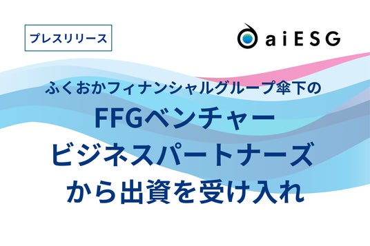 製品およびサービスレベルのサプライチェーン ESG 分析評価コンサルティング・クラウドサービスを開発・提供する株式会社aiESG (アイエスジー、本社:福岡市博多区、代表取締役:馬奈木 俊介/以下、aiESG)は、株式会社ふくおかフィナンシャルグループ(取締役社長 五島 久、以下「FFG」)傘下の株式会社FFGベンチャービジネスパートナーズ(代表取締役社長 吉田 泰彦、以下「FVP」)から出資を受け入れるとともに、FFGとの連携を開始したことをお知らせいたします。