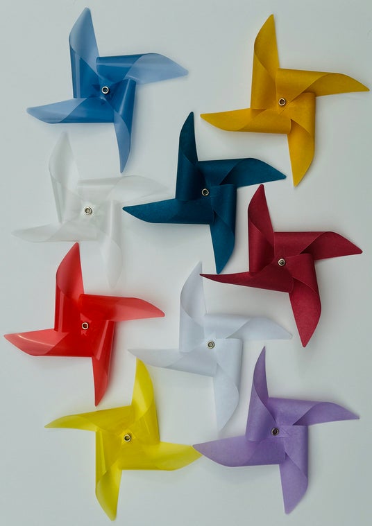 ┗エコロジカルさにも注目!約400個のかざぐるまに使用済みクリアファイルを活用