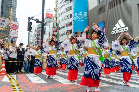 8月のお盆時期の週末には、日本に古くから伝わる伝統芸能や日本各地のお祭りが日比谷ステップ広場に大集結。夏の祭りを代表する徳島発祥の「阿波おどり」や、沖縄の「創作エイサー」、北海道の「YOSAKOIソーラン」などが登場し、日比谷にいながら日本各地の夏のお祭りが無料で楽しめて、まるで全国を旅しているような気分を味わえます。