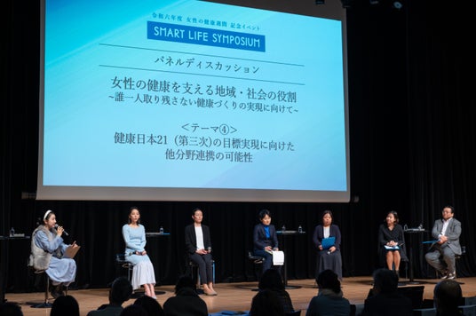 今般、女性の健康週間の一環として「女性の健康を支える地域・社会の役割~誰一人取り残さない健康づくりの実現に向けて~」をテーマとしたシンポジウムを3月7日(金)神田明神ホールにて開催いたしました。本イベントでは、女性のライフステージごとの健康課題、取り組むべき重点項目を知り、先進的事例の共有の中から、新しい取り組みのヒントを探求する場とし、各分野からゲストをお招きし、本テーマについてさまざまな側面から議論するパネルディスカッションを実施いたしました。
