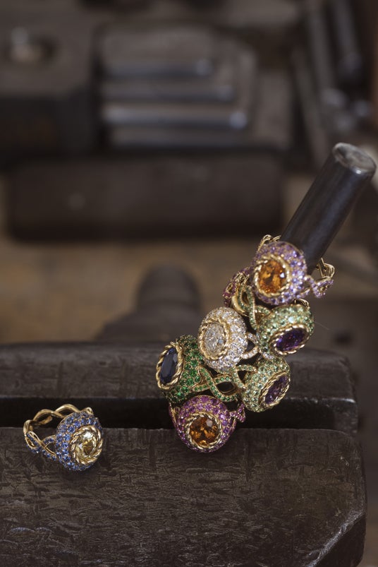 18Kイエローゴールドと厳選された宝石が彩る、歓びと色彩に満ちたリングコレクション