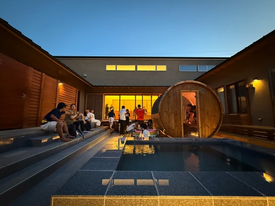 入浴施設やバレルサウナ、中庭、ゲストルーム、ダイニングキッチンなどを備えた設計は、単なる休憩・宿泊の機能だけではなく、「人が集い、関係を深める場」としての役割を担います。