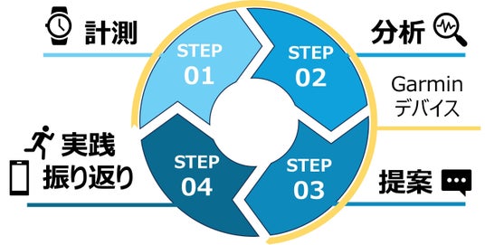 Garmin本社では常に最新のイノベーションを採用した新製品が生み出されています。Garminのウェアラブルウォッチは、高精度のGPSと第5世代光学式心拍計などの各センサーによって運動や健康に関するデータを計測・可視化し、独自のアルゴリズムでデータを分析。そして、一人一人にパーソナライズされたトレーニングメニューや推奨睡眠時間などを提案します。さらに、ユーザーがその記録やパフォーマンスを振り返ることにより、長期的な実践や目標達成につなげることができます。