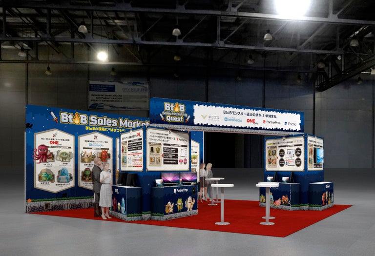 当ブースでは、ワンマーケティングをはじめ、immedio、パートナープロップ、ネクプロ、SYSLEAの5社が共演。各社が得意とする課題解決を“モンスター討伐”として表現し、実際のソリューションを提示します。