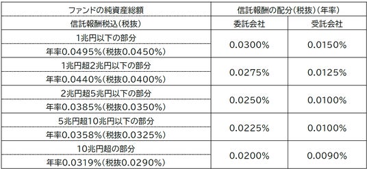 ※信託報酬の配分は、ファンドの純資産総額に応じて、以下の通りとします。