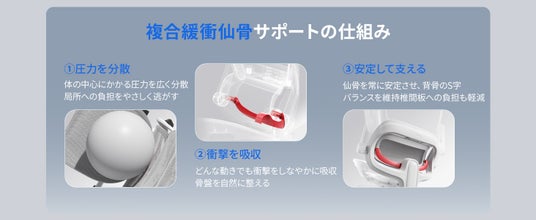 今年新たに発売したBシリーズは、SIHOO独自開発の「複合緩衝仙骨サポート(Composite Sacral Support)」を搭載。背骨の土台となる「仙骨」を正確に支えることで、骨盤が自然に安定し、背骨本来のS字カーブが無理なく保たれます。座るだけで姿勢が整う感覚を、ぜひ体験してください。