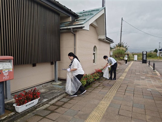 LiViT会津若松エリアオフィス社員により、花壇の中や駅舎壁面を中心に清掃・ゴミ拾いを実施しました。蜘蛛の巣の駆除や、たばこの吸い殻などのごみを拾い集め、一同とても清々しい気持ちを得ることができました。