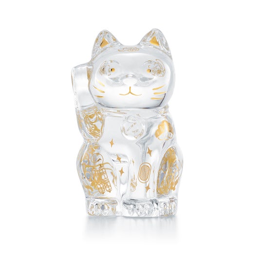 バカラで長年愛されてきたクリスタルのまねき猫に、吉祥文様を金彩であしらった新作「まねき猫 宝尽くし」が登場。日本のラッキーモチーフに、古今東西の宝を集めた華やかな意匠を重ね、さらなる福を招く象徴として輝きを放ちます。