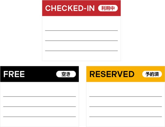 現在の状態(空き/予約済み/利用中)を視認性の高いデザインで表示するため、誰でも一目で状況を把握できます。