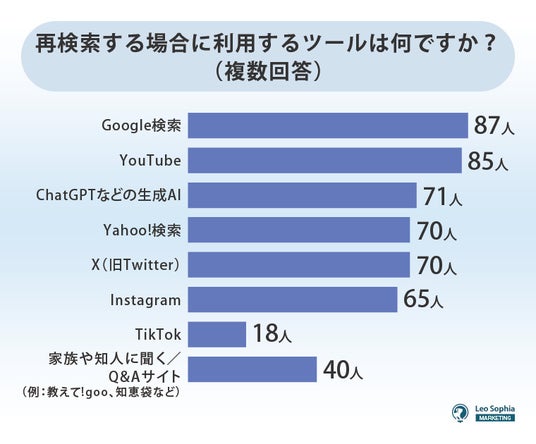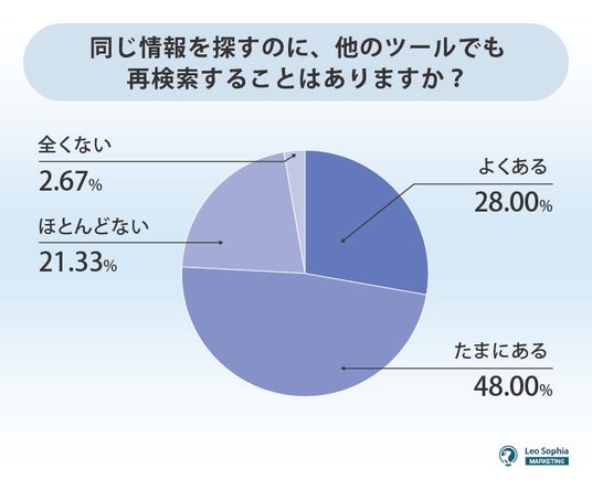 この再検索行動の背景には、各検索ツールが持つ特性の違いや情報の種類・質に対する期待値の差が影響していると考えられます。