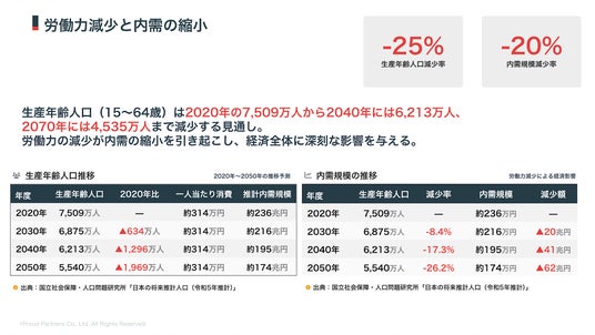 1)【図1】生産年齢人口の減少と推計内需規模データの出典とロジック