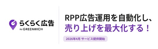 EC支援ツールを展開するグリニッジ株式会社(本社:東京都渋谷区、代表取締役:田中 裕之)は、楽天市場のRPP(楽天プロモーションプラットフォーム)広告運用自動化ツール「らくらく広告」の提供を新たに開始いたしました。本サービスのリリースを記念し、新規導入店舗を対象とした過去最大級の「らくらく広告リリース記念キャンペーン」を実施いたします。