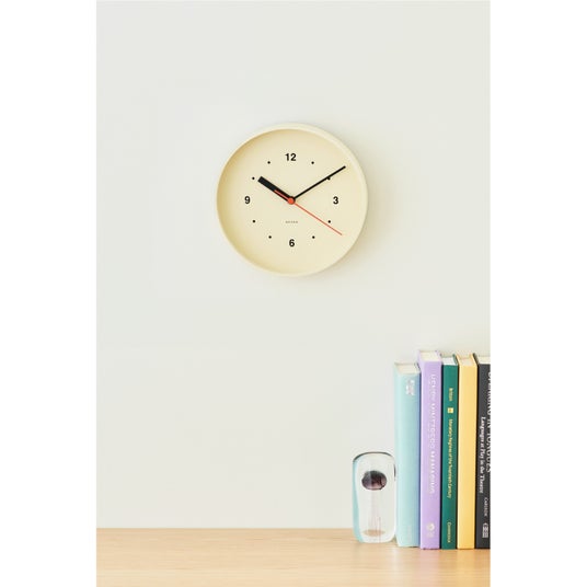 直径20cmと小ぶりなサイズ感で、専用スタンドと組み合わせて置き時計としても使えます。アイボリーとグリーンの2色展開。