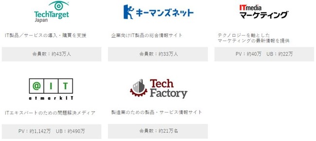 ABMデータは、以下のアイティメディアが運営するIT/産業領域の専門メディア群にてベンダーコンテンツを閲覧(資料ダウンロード及びアンケート回答)した企業情報です。