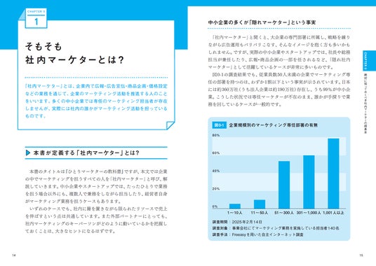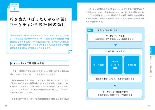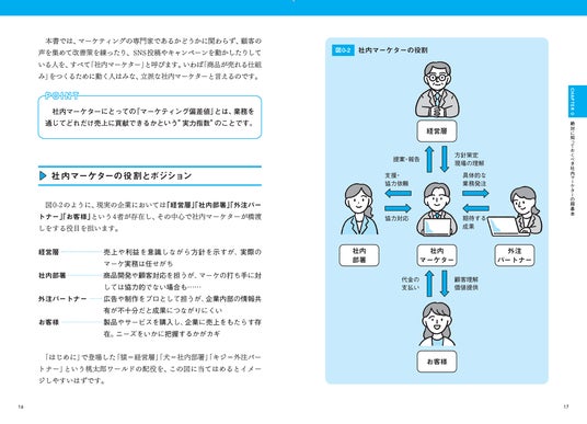 経営者の視点と現場の実務を同時に捉えた、今までになかった社内マーケターのための入門書として、兼任でマーケティングを担当している方でもすぐに取り組める内容となっています。
