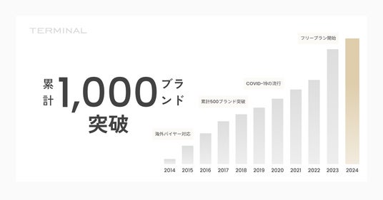 ファッション業界向けBtoB ECプラットフォーム「TERMINAL」の開発・運営をおこなうターミナル株式会社(所在地:東京都渋谷区、代表:伊奈 亮輔)が、会社設立から10周年を迎え、2024年5月に導入実績が累計1,000ブランドを突破しました。
