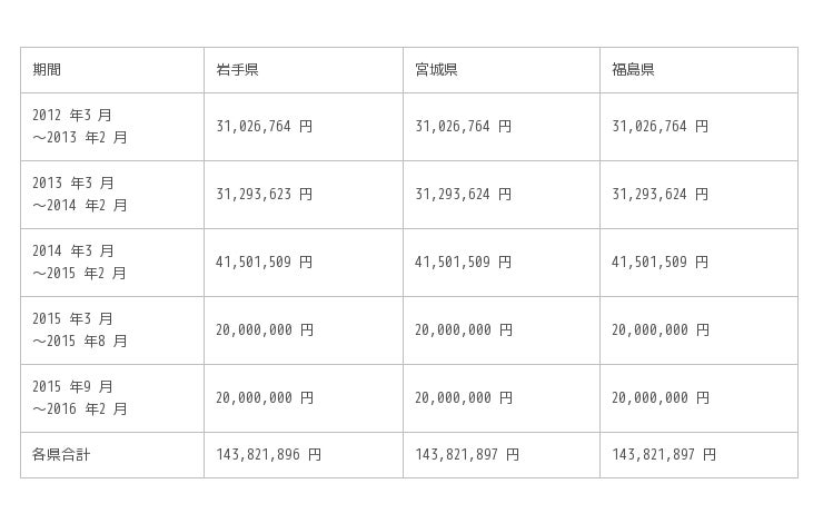 今回の寄付金は、2015 年9 月1 日から2016 年2 月29 日の間、お客様からご協力いただいた分をお届けしています。当社はこれからもお客様のご協力のもと、引き続き東日本大震災の復興支援を継続していきます。