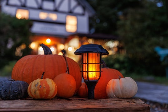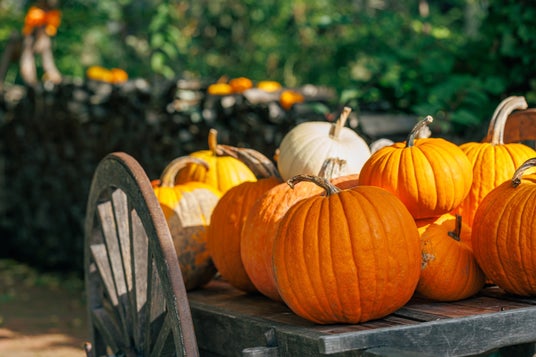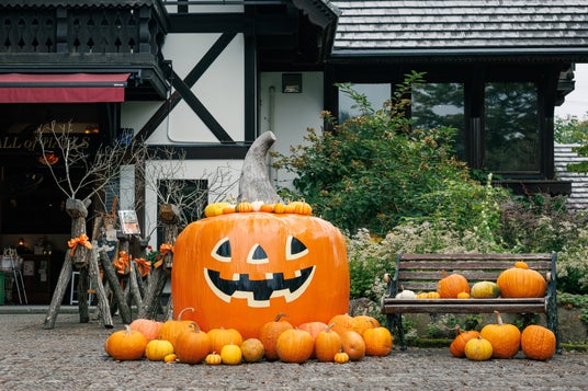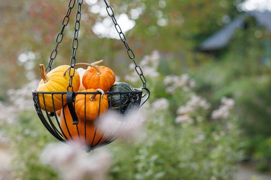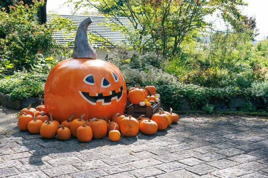 大小1000個以上のカボチャで飾り付けをされたナチュラルガーデン