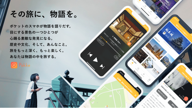 Pokkeは「旅先の物語を届ける」をコンセプトとする、旅と学びの観光DXソリューションです。美術館や博物館向けの音声ガイドや街歩き型のトラベル音声ガイドを主体としたスマートフォン・WEBアプリとして展開しています。