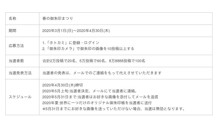 抽選で20名様に「あなたの選んだ画像を御朱印帳の表紙にした世界に一つだけのオリジナル御朱印帳」をプレゼント!というキャンペーンです。