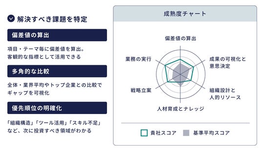 才流が独自に開発した「マーケティング組織の成熟度診断」を会員に提供します。戦略と実行の2軸で自社のマーケティング組織を評価し、業界内での相対的な位置づけと重点的に取り組むべき課題を明確にします。