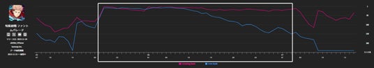 ただしハーフアニバーサリーの2日後に『デジモンテイマーズ』とのコラボイベントがあったため、ランキング推移はこの影響も大きい。