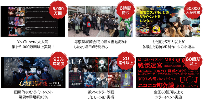 「怖いは楽しいで世界中の好奇心を満たす」を企業メッセージに掲げる。WEBやSNSなどを積極的に活用したデジタルコンテンツが若者世代を中心に人気を博す。またリアルイベントでも数々のテーマパークや商業施設などで企画・プロデュースを担当。