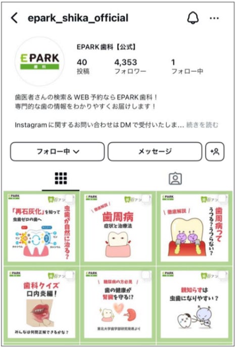 正しい歯科知識を提供することを目的として、口腔内に関する情報を発信。口腔内トラブルのメカニズムや日々の口腔内ケアに関する投稿が中心。