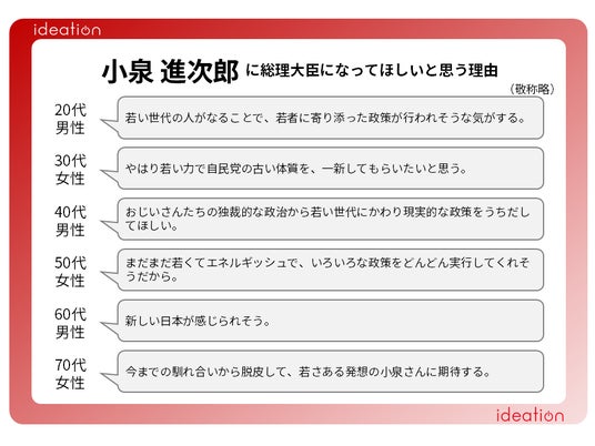 小泉 進次郎氏を支持する理由として、若くエネルギッシュだからこそできる政策や、一新された日本への期待を抱いている声などがあがりました。