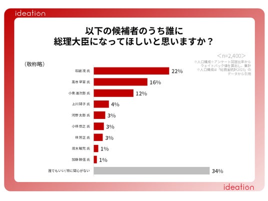 次に、次期総理大臣になってほしい候補者について調べました。