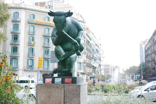 頭にハテナマークを浮かべている牛ですが、この牛はスペイン・バルセロナのランブラ・デ・カタルーニャ通りにある銅像がモチーフ。