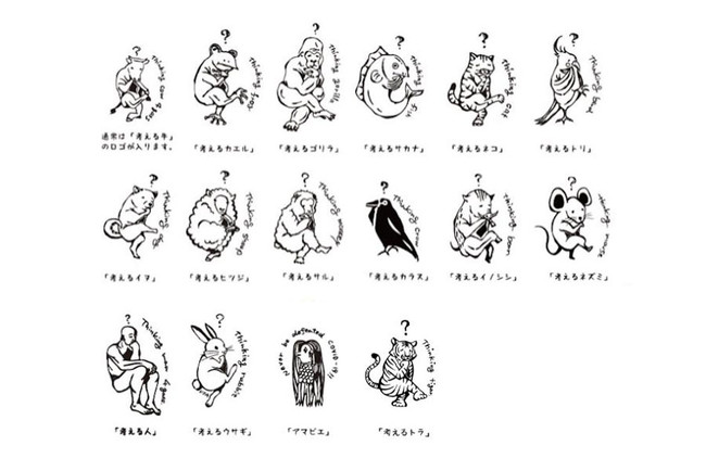 そんな考えるシリーズのロゴは実は16種類も存在します。猫もその中の一つで、足を組み考えるポーズをとったデザインに仕上がっています。