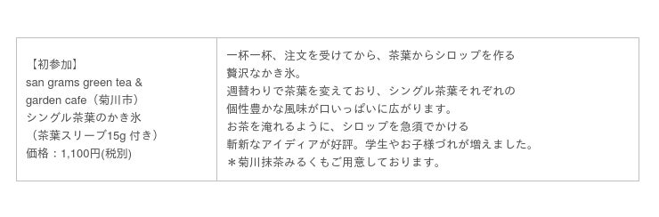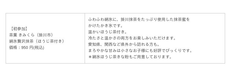 また、行列を発生させないように台帳記入制を導入するなどの工夫も。様々な施策の成果もあって、お子様連れからシニア層まで、多くのお客様が、心地よく「茶氷」を楽しんでおり、中には、こんな状況の中、昨年よりかき氷の販売個数が増えた、というお店も見られます。