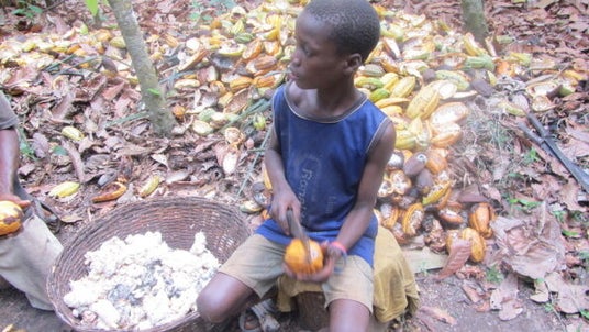 ガーナのカカオ農園で児童労働をする子ども(撮影ACE)