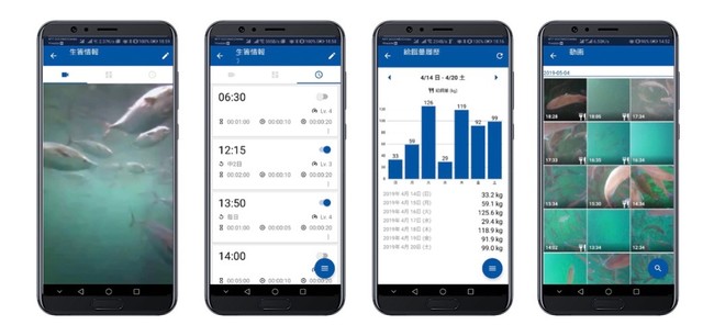 「UMITRON CELL」は、AI・IoT技術を活用した水産養殖者向けスマート給餌機です。スマートフォンなどの端末から生け簀で泳ぐ魚のリアルタイム動画を見ながら遠隔で餌やり操作が可能。また、AIが魚の食欲を判定し、餌量やスピードを最適化、制御することができるため、労働負荷の削減と餌の最適化、海へ餌が流出することを防ぎ環境に配慮した養殖業の実現に貢献しています。