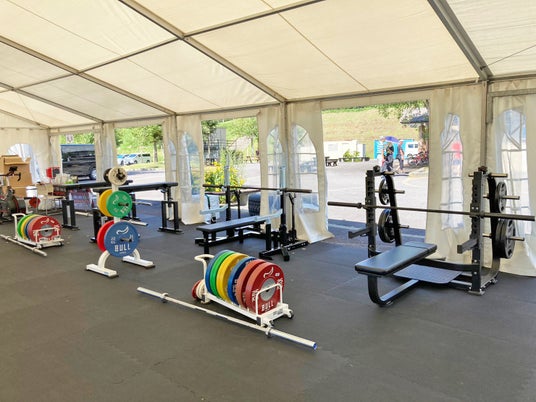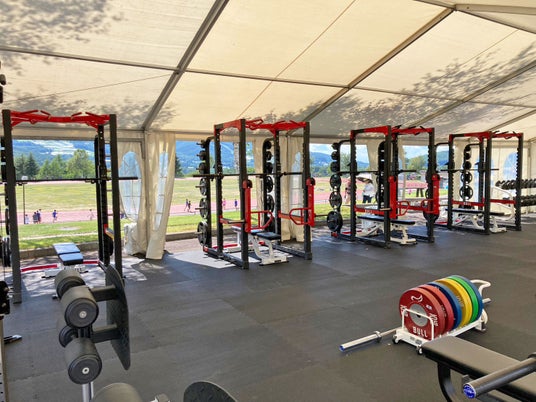 パワーラック4台、オリンピックベンチ2台、デュアルアジャスタブルプーリー、リフティング用スペース、ダンベル12~50kg、Wattbike 4台他