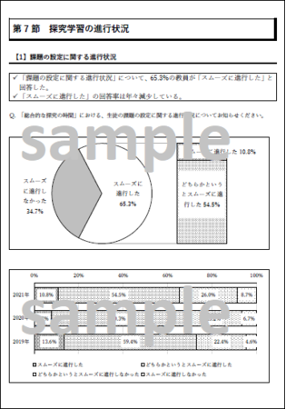 第2章では、高等学校の教員を対象に、探究学習に関する意識調査を実施し、その結果をまとめました。探究学習の授業はどのようにして進められているのか、課題点は何か、生徒はどのように変化したかなどさまざまな側面から調査し分析しました。