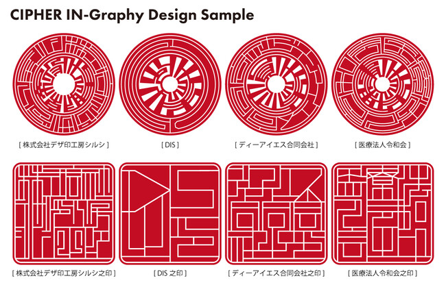 新作「サイファー印グラフィー」の「サイファー(cipher)」とは、直訳すると暗号となり、印鑑デザインは暗号のような模様に見えるけど意味のあるものとしてデザインしています。