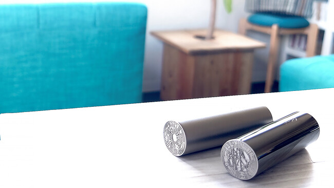 ハンコの材質は、山桜などの“天然木材”、樹脂と木材を織り交ぜた“強化木材”、建材技術で作られた“圧縮天然木材”、チタンやカーボンなどの“新素材”と15種のハンコ材から選べます。