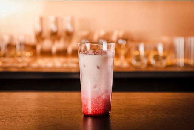 グリオットチェリーのピューレをサクラとアーモンドミルクで割った一杯。