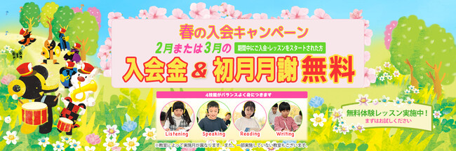 個別・自立学習型の子ども英語教室Lepton(レプトン)を全国1,250拠点(※1)でフランチャイズ展開する、株式会社FREEMIND(本社:京都市中京区、代表取締役社長:北田 秀司)は、春の新入学、新学期に向けて、ひとりでも多くのお子さまに英語の早期学習を始めていただけるよう、2023年2月または3月(※2)にキャンペーン対象教室のいずれかに新規で入会し、レッスンをスタートされた方全員の、入会金および入会月の月謝が“無料”になる『春の入会キャンペーン』を実施いたします。無料体験レッスンは1月より随時受け付けております。ぜひ、お早めにお申し込みください。