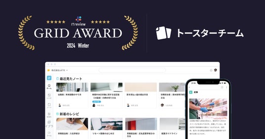 企業向けヘルプサービスを開発・運営するnoco株式会社(本社:東京都墨田区、代表取締役:堀辺 憲)が提供するAIマニュアル作成ツール「トースターチーム」が2024年1月18日(木)、アイティクラウド株式会社(本社:東京都港区、代表取締役社長:黒野 源太)が運営するBtoB向け「ITツール・サービス」専門のレビュープラットフォーム「ITreview」において、「ITreview Grid Award 2024 Winter」の4部門で「LEADER」を受賞しました。