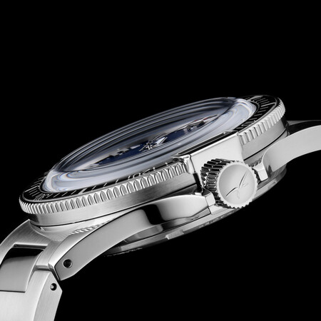 316Lステンレススチール製のケースバックにはフランス航空宇宙軍の紋章が刻印されています。一つ一つのタイムピースには、リミテッドエディションであることを意味する0001番から1000番までのシリアル番号が刻印されています。製品番号0001番はフランス空軍フランス空軍海難救助隊員キャプテン、スチーヴ・スラックが隊員として生涯のキャリアを捧げた事に敬意を表し、公式に手渡されました。