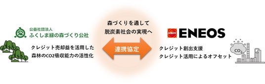 本協定において、両社は、ふくしま緑の森づくり公社が管理する森林を対象とする森林由来のJ-クレジット※1を創出・活用します。ふくしま緑の森づくり公社は、クレジット売却益を森林整備の費用に充て、森林の持つCO2吸収能力の長期的な維持を目指します。また、ENEOSは、創出されたクレジットを東北地方をはじめとする事業活動におけるCO2排出量のオフセットに活用します。