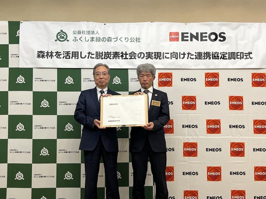 公益社団法人 ふくしま緑の森づくり公社(以下「ふくしま緑の森づくり公社」)とENEOS株式会社(以下「ENEOS」)は、福島県内の森林を活用した脱炭素社会の実現に向けた連携協定(以下「本協定」)を本日締結しましたのでお知らせいたします。