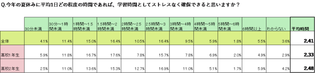■今年の夏休みに平均1日どの程度の時間であれば、学習時間としてストレスなく確保できると思いますか?