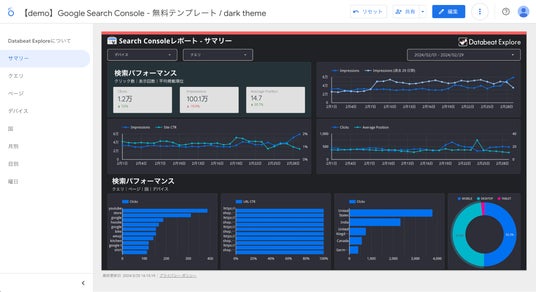 サーチコンソール対応版Looker Studioテンプレート(ダークテーマ)で閲覧できる情報