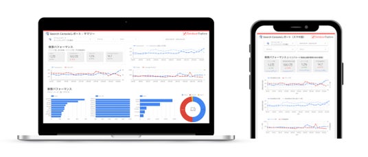 さらに、スマートフォン用テンプレートは、レポートをスマートフォンで閲覧することを想定した仕様になっておりますので、パソコンが手元にない場合や、サーチコンソールのサマリーをスマートフォンで素早くチェックしたい場合におすすめです。