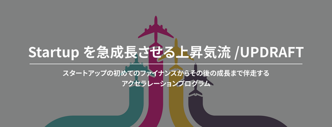 『 UPDRAFT 』は、「豪華メンター陣」×「事業会社連携」×「充実したプログラム内容」を掛け合わせた投資選択型シード期特化アクセラレーションプログラムです