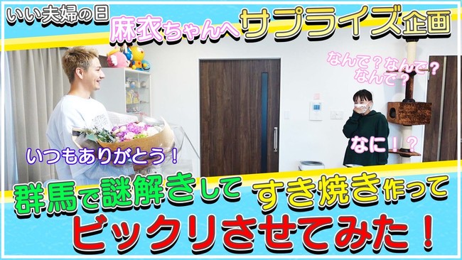 (【JOYMAI HOUSE】麻衣ちゃんに「いい夫婦の日」サプライズ!群馬県で謎解きしてアイテムGET!?JOYはすき焼きを作れるのか?)